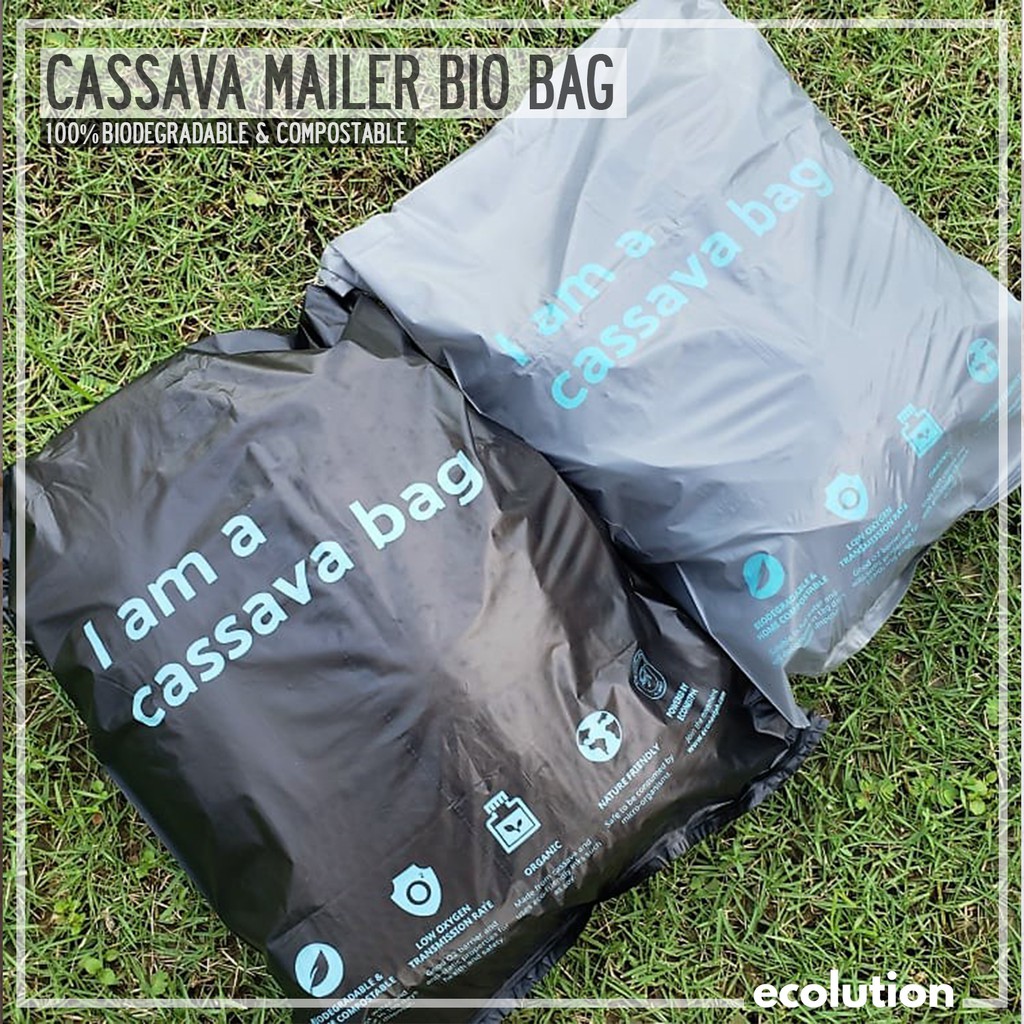 Cassava bags will dissolve when they find themselves in lakes and oceans. Our cassava bags are made mostly from a natural organic starch deriving from cassava root as well as vegetable oils and natural resins. Custom Cassava Mailer Biobags.
