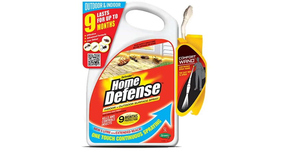 Home defense indoor & outdoor barrier spray. Combining the advantages of a contact insecticide and an effective barrier spray Home Defense will kill pests and protect your property from further incursions. The Home Defense Insecticide Surface Spray is an advanced formulation for the residual control of household insect pests both indoors and outdoors around the home. It is effective for up to 9 months after application and comes in a convenient and ready to use trigger pack.