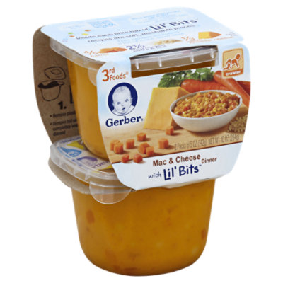 WATER SQUASH SWEET POTATOES COOKED ENRICHED MACARONI WATER WHEAT SEMOLINA EGG WHITES NIACIN FERROUS SULFATE THIAMIN MONONITRATE RIBOFLAVIN FOLIC ACID DRIED CHEDDAR CHEESE CULTURED MILK SALT ENZYMES DISODIUM PHOSPHATE ANNATTO EXTRACT COLOR WHOLE GRAIN BROWN RICE FLOUR WHEY WHOLE WHEAT FLOUR CANOLA OIL ASCORBIC ACID VITAMIN C TO MAINTAIN COLOR. Kraft Original Flavor Macaroni and Cheese Meal 725 oz. I thought they werent supposed to have dairy products until after a year old. Gerber 2nd Foods Mac and Cheese with Vegetables Dinner helps expose babies to a variety of tastes and ingredient combinations 2nd Foods Mac and Cheese with Vegetables Baby Food Gerber JavaScript seems to be disabled in your browser. WATER SQUASH SWEET POTATOES COOKED ENRICHED MACARONI WATER WHEAT SEMOLINA EGG WHITES NIACIN FERROUS SULFATE THIAMIN MONONITRATE RIBOFLAVIN FOLIC ACID DRIED CHEDDAR CHEESE CULTURED MILK SALT ENZYMES DISODIUM PHOSPHATE ANNATTO EXTRACT COLOR WHOLE GRAIN BROWN RICE FLOUR WHEY WHOLE WHEAT FLOUR CANOLA OIL ASCORBIC ACID VITAMIN C TO MAINTAIN COLOR. Alternatively add extra nutrition by substituting canned pumpkin or pumpkin baby food. Serve the warm macaroni and cheese to your baby. If baby cannot mashgrasp melt cheeses over vegetables or add to veggiemeat purees. Online shopping for Macaroni Cheese from a great selection at Grocery Gourmet Food Store.