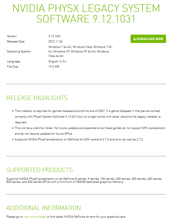 Nvidia physx system software needed. Contrary to popular beliefs that PhysX just adds some resource-heavy fancy effects PhysX is actually a full-featured physics engine. However in general if the game is advising that you install Physx from its own image - it may require a specific version to run. PhysX System Software - If you are into gaming you may need to install this for some games to run.