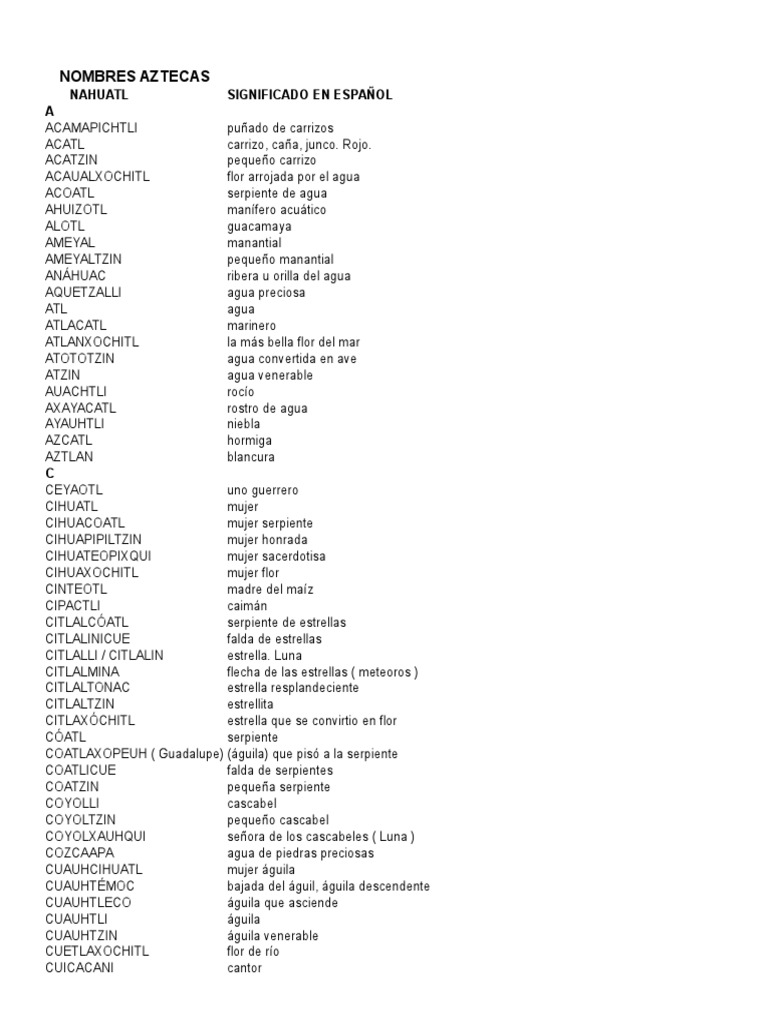 El primer nombre de niño de origen azteca que tenemos en nuestra lista es Ameyal un nombre que refleja la pureza y la gran. Este nombre pertenecía a un demonio vengativo perteneciente al folklore ilocano. Nombres aztecas para bebés con significados.