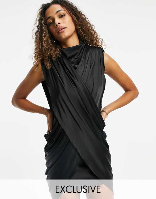 Alexander McQueen Asymmetric Front-Buckle Draped Dress 93226 1923. - High neckline with keyhole - Sleeveless - Back button closure -. Petite options however also provide a perfect fit. Please select your size. Making the right choice when shopping for these accessories may mean looking at versions that date from different eras you can find early iterations from the 20th. Boasting an all-over sequined style fitted silhouette and comfortable stretch fabrication steal the show on your night out. Choose muslin that is close to the weight of the material you want to use in the final dress so that it behaves in a similar way. Almost no other dress except for maybe its cousin the wrap dress is so flattering and so versatile especially if you have one like this black drape dress that I will model in this post. Plus Size Izzie Mesh Rhinestone Dress - Black.