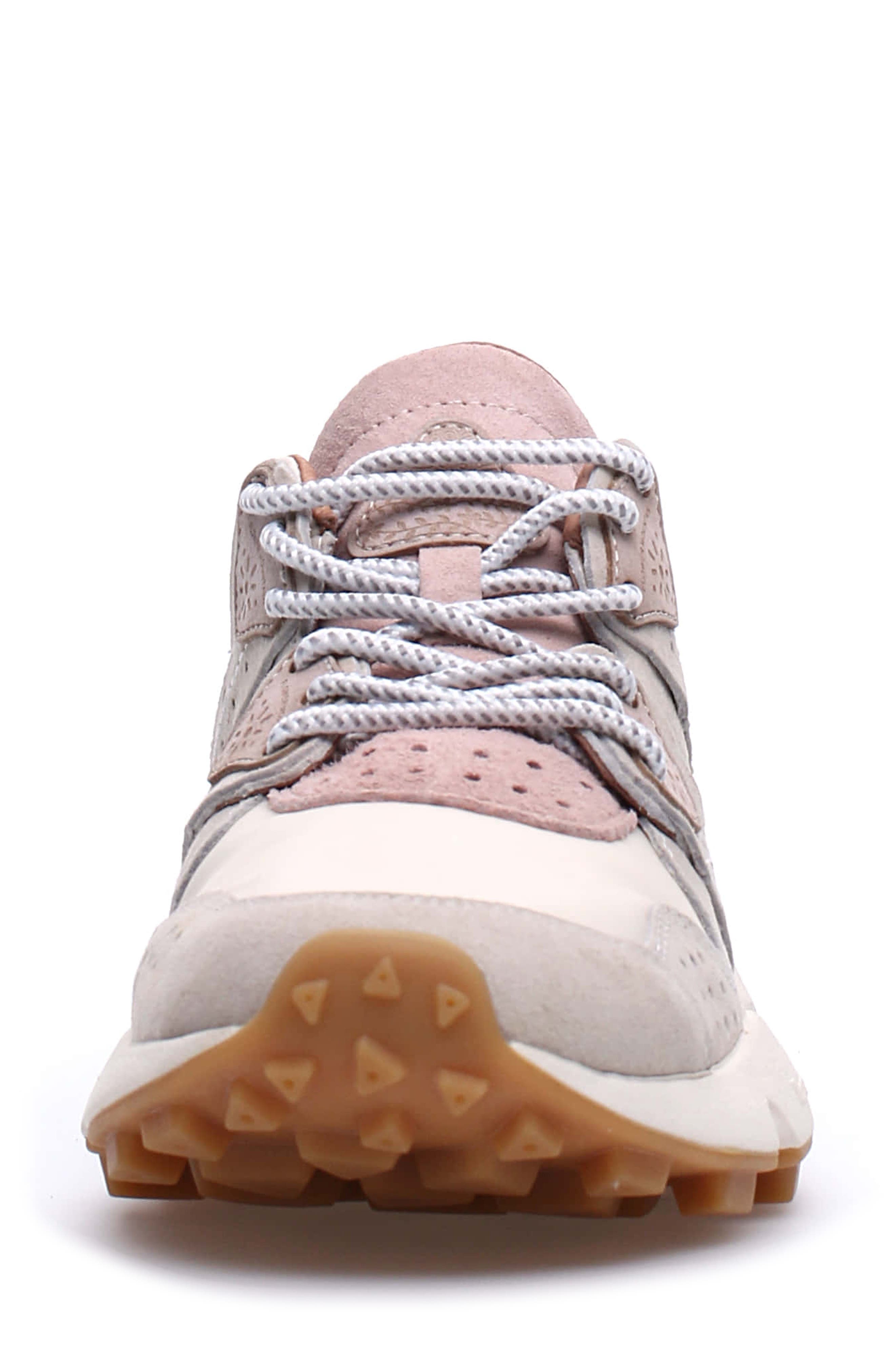 Playful pops of color meet delicate Japanese-inspired floral cutouts in these lightweight high performance sneakers. Womens shoes with violet Nubuck uppers decorated with sheepskin applications long the ankle edge. The YAMANO collection is designed to express the uniqueness of flower Mountain its love for nature and for high quality craftsmanshipThese sneakers are made of soft rich velour leather which offer a sense or organic warmth while the lines perforations and stitchings recall nature.